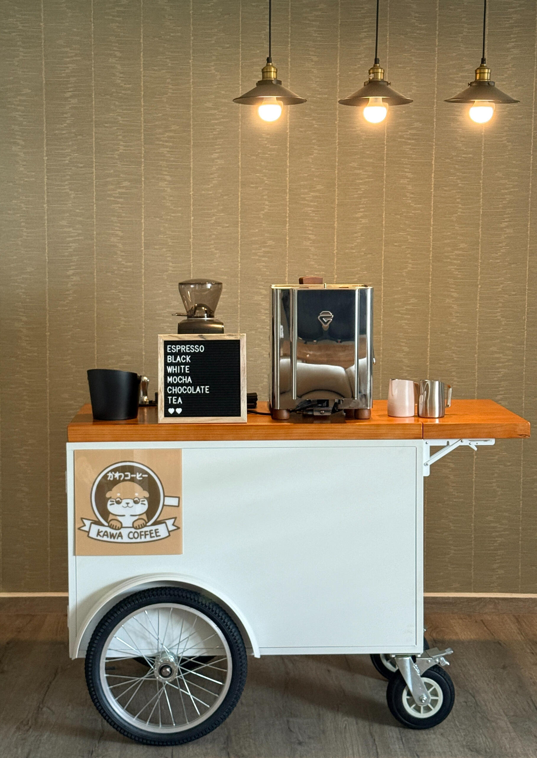 Here at Kawa Coffee, we bring quality and freshly brewed coffee to your celebrations and events so your guests stay ENERGISED all day!Rates for our coffee cart service starts at $600 for 100 cups, served over a 2-hour duration. Not a coffee fan? Our standard menu includes both coffee and non-coffee drinks. Menu customisations are also available at additional cost.